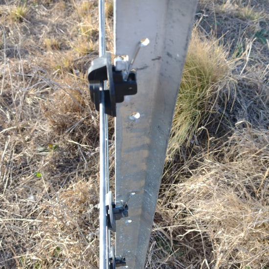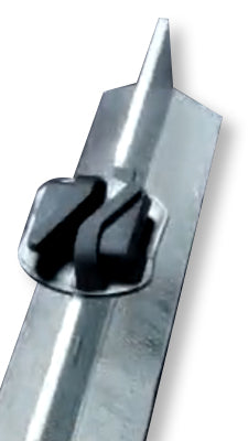 Los clips convierten estos postes en excelentes tutores para reparar alambrados existentes, permitiendo estirar el alambre sin cortarlo ni usar tenazas.