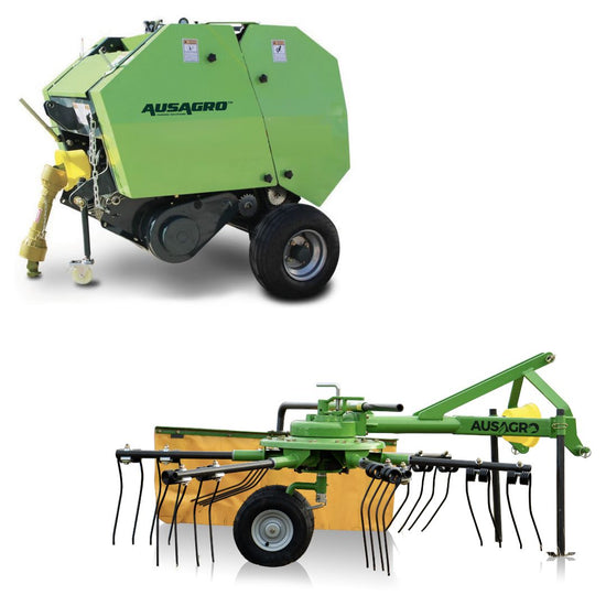 Simplifica tu producción de fardos con el Combo Aus Agro Mini roto y rastrillo